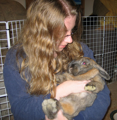 We're still dealing with some litterbox issues. The nail trim did not help the digging. So we got a taller litterbox. Unfortunately, there is a space between one end of the litterbox and the back of the cage, and the bunnies used this as a litterbox. When we blocked off that little space, they started using the carrier. We closed off the carrier and bought another litterbox, so here's hoping the naughty pee behavior stops. *sigh* Rabbits.